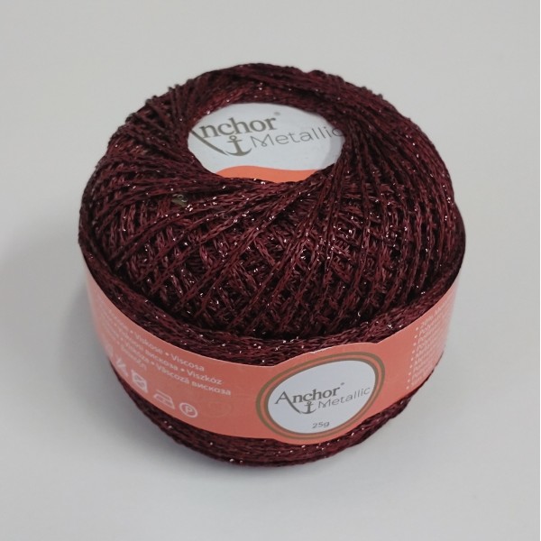 Efektní příze pro netradiční krajky. Vínová metalická 319.