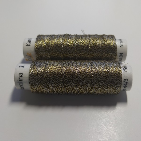 Metalická niť Karolína odstín č. 4 zlatá + černá, síla č. 2