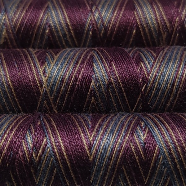 Bavlna 40x2, 100% mercerovaná bavlna, 140m, odstín č. 32 vínovo-šedo modrá.