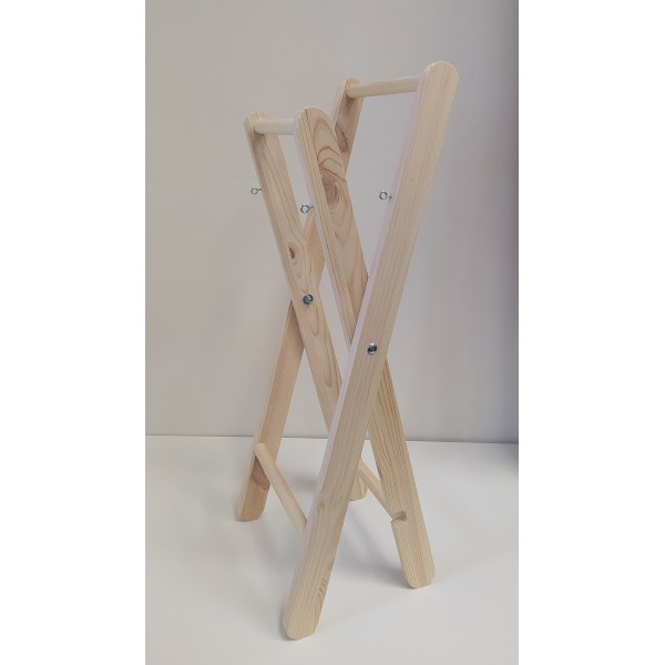 Praktický stojánek na cesty - po složení je zcela plochý. Výška je 78cm a šířka - prostor na podušku je v přední části 24,5cm, zadní část 28,5cm.